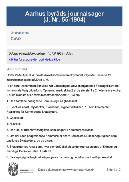 "1 en hertil indkommen Skrivelse har Landstingets Udvalg angaaende Forslag til Lov om kommunale Valg udbedt sig Oplysning meddelt fra 2 af de største, fra 2mellemstore og fra 2 af de mindste af Landets Købstæder for Aaret 1903 om: