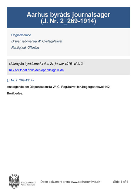 Andragende om Dispensation fra W. C. Regulativet for Jægergaardsvej 142.