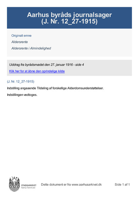 Indstilling angaaende Tildeling af forskellige Alderdomsunderstøttelser.