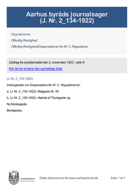 a. (J. Nr. 2_134-1922). Mejlgade Nr. 50.