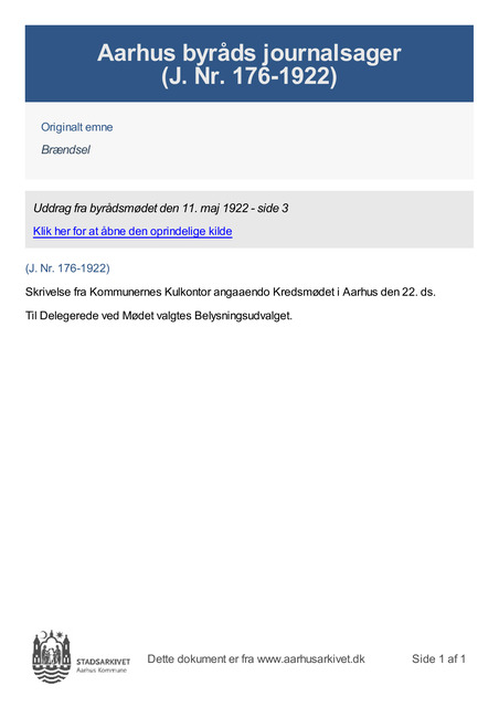 Skrivelse fra Kommunernes Kulkontor angaaendo Kredsmødet i Aarhus den 22. ds.