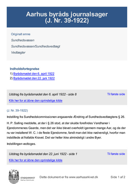 Indstilling fra Sundhedskommissionen angaaende Ændring af Sundhedsvedtægtens § 26.