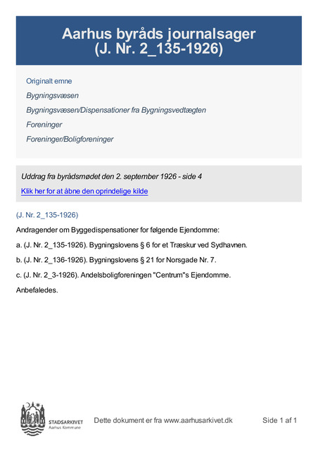 c. (J. Nr. 2_3-1926). Andelsboligforeningen "Centrum"s Ejendomme.