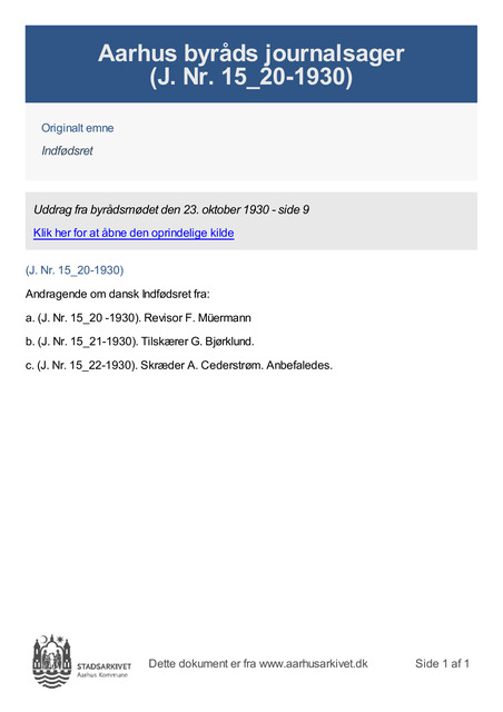 a. (J. Nr. 15_20 -1930). Revisor F. Müermann