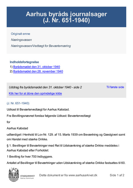 udfærdiget i Henhold til Lov Nr. 129. af 15. Marts 1939 om Beværtning og Gæstgiveri samt om Handel med stærke Drikke.