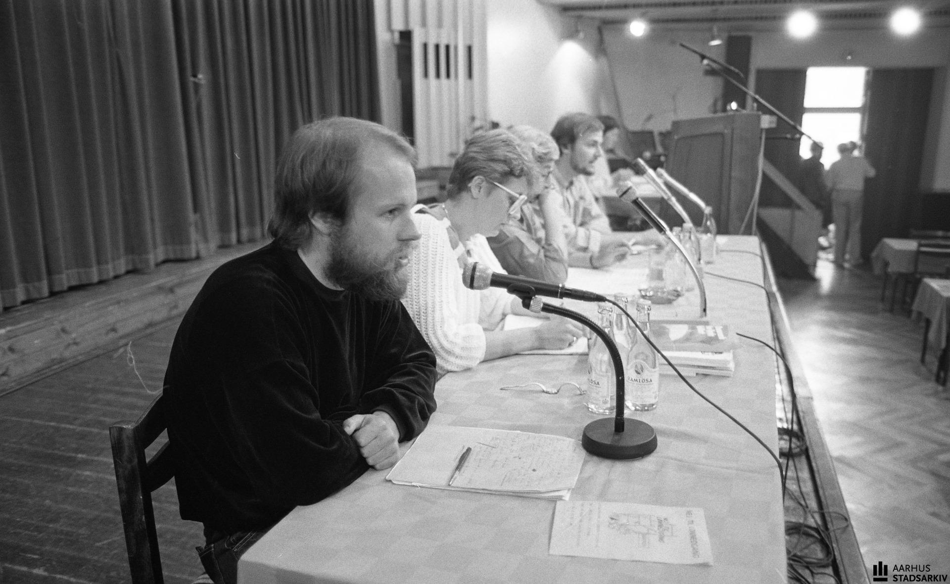 Valgmøde før folketingsvalget 1987 med de lokale politikere Keld Albrechtsen (EL), Sonja Mikkelsen (S), Ebba Strange (SF) og Ole Sohn (DKP) i Kongreshuset.