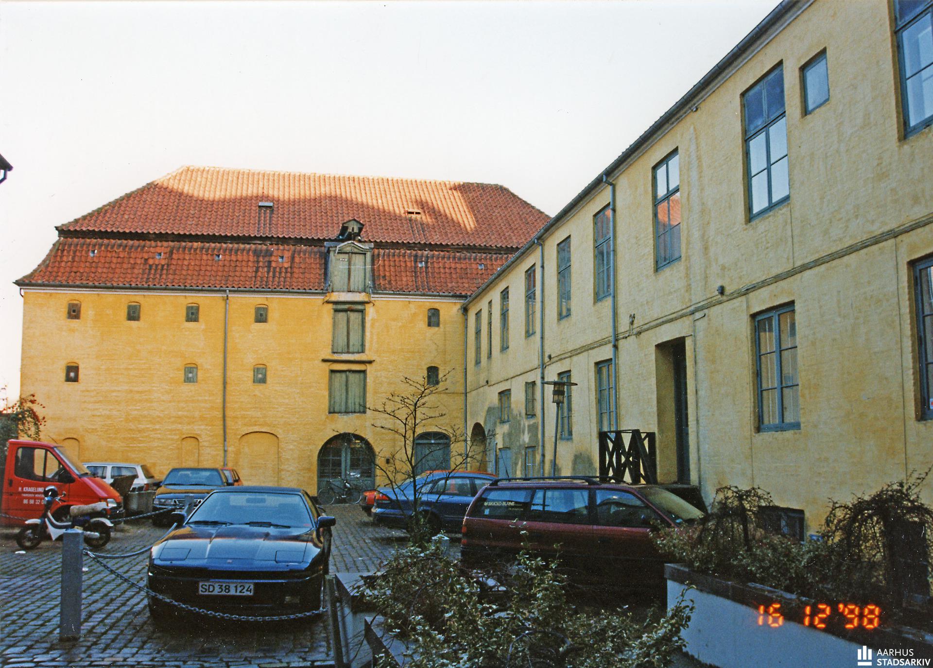Gårdsiden af Badstuegade 1A og 1B. Badstuegade 1 blev opført i 1809 af købmanden og justitsråd Harboe Meulengracht. Bygningen blev opført som et pakhus til købmandsforretningen.