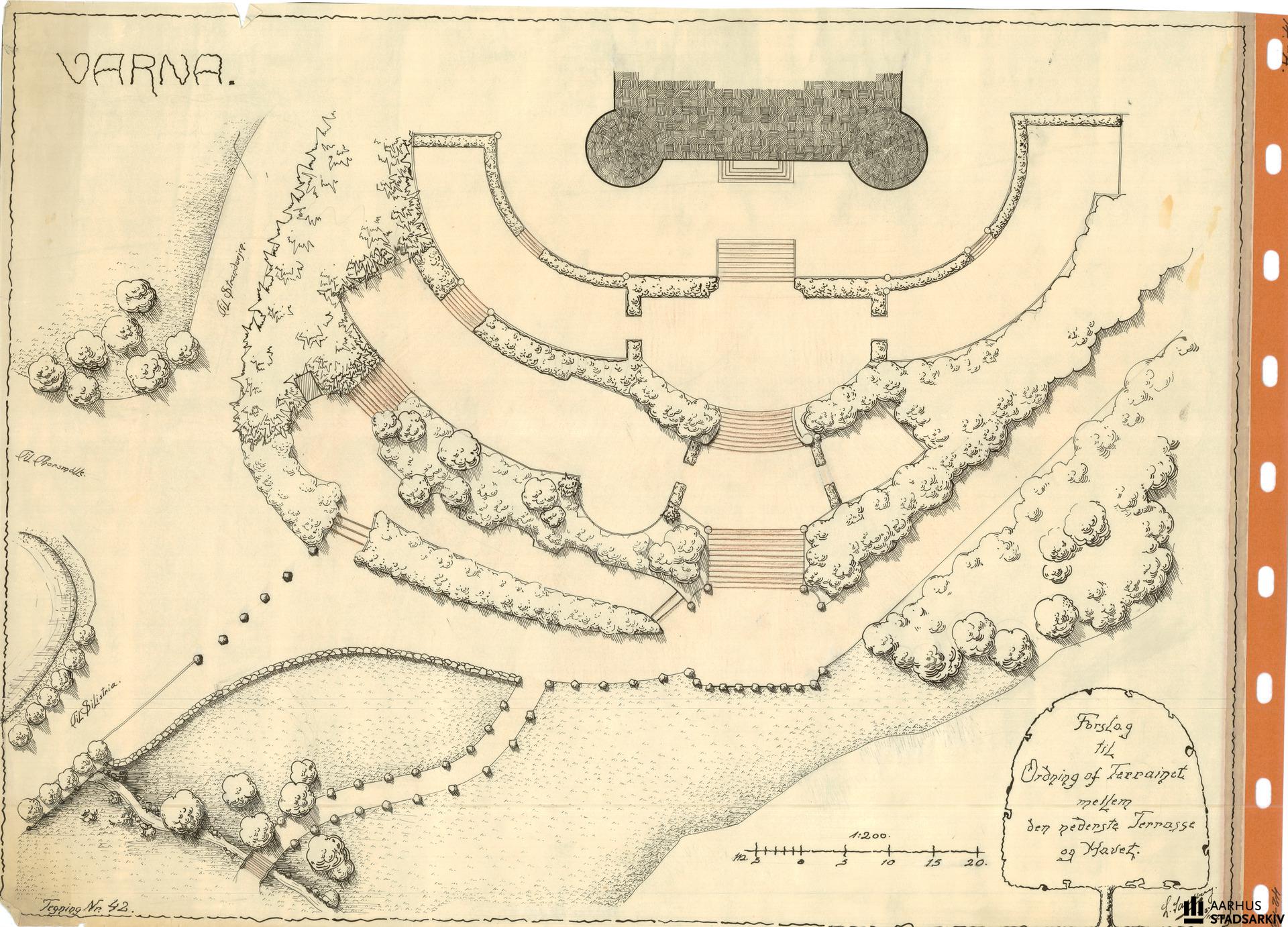 Forslag til ordning af terrænet mellem den nederste terrasse og havet