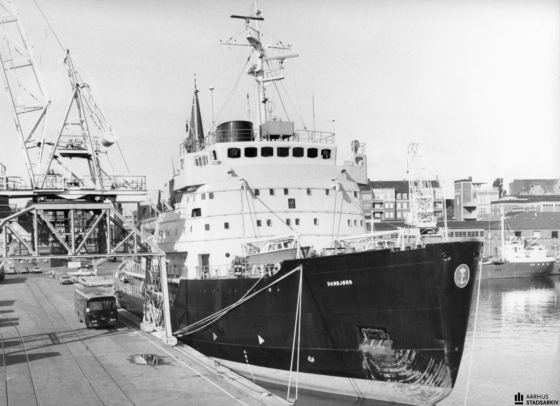 Isbryderen "Danbjørn", med "ridser i lakken" efter vinterens isbrydning, ved Pier 1, sommeren 1980 (rep. ved Dannebrog Værft).