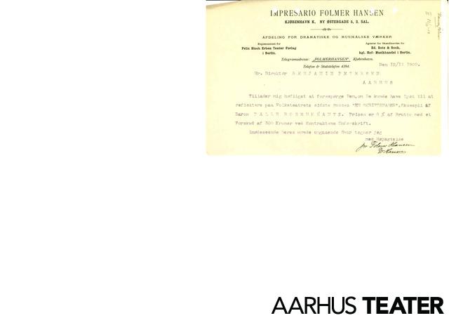Brev fra impresario Folmer Hansen til Aarhus Teaters direktør Benjamin Pedersen